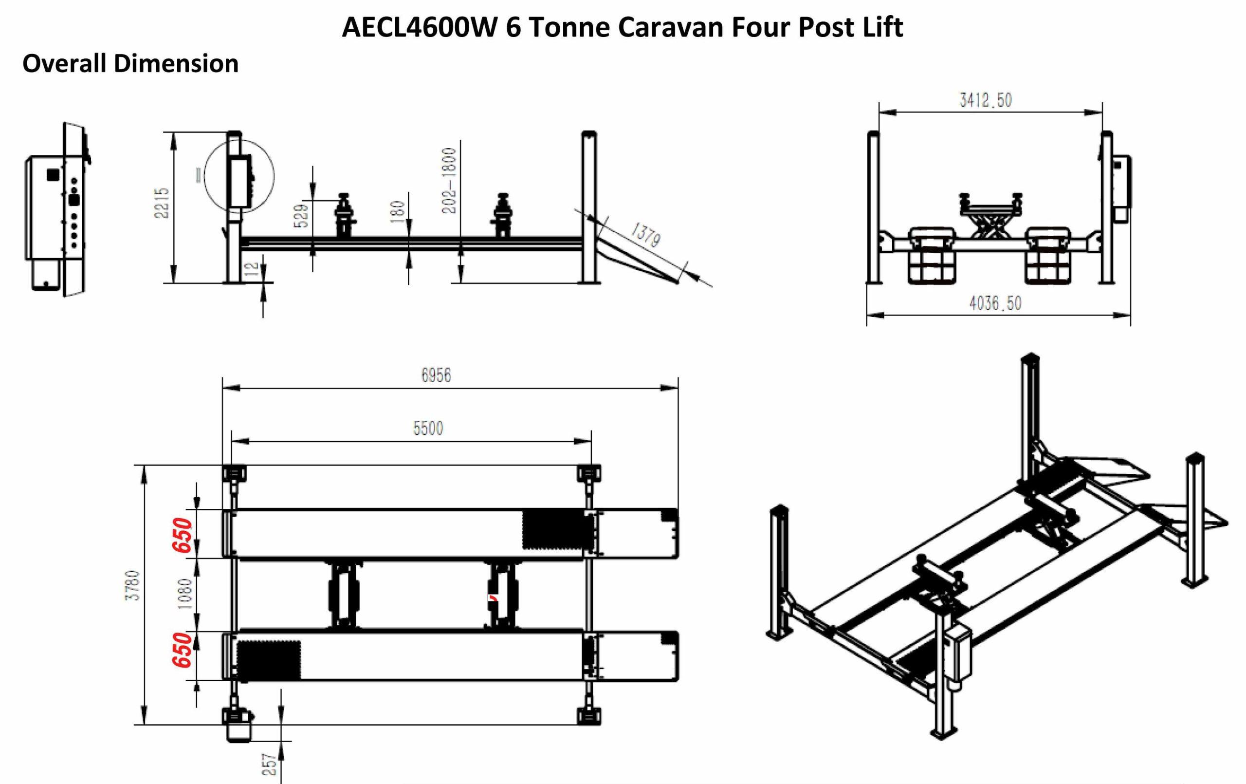 4 POST 6 TONNE CARAVAN AND RV LIFT WITH CARAVAN JACKING BEAMS AECL4600W FROM LUFTEN