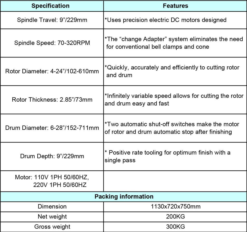 BRAKE LATHE FOR CARS, 4X4 AND VANS AE-BL9372L